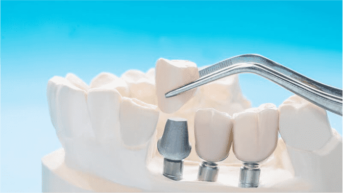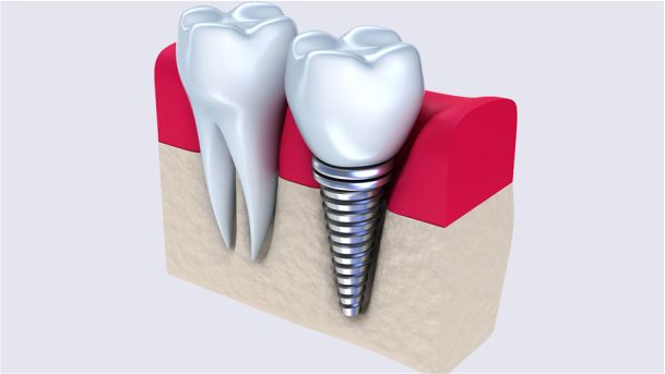 Quando se perde a raiz, independente do motivo, tem que ser colocado um implante dentário no lugar. O implante dentário é um parafuso que é fixado no osso, substituindo assim a raiz do dente.